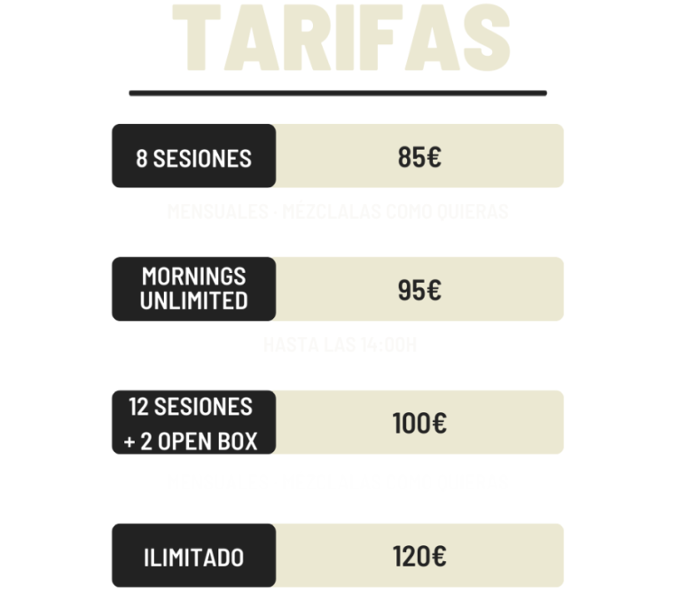 - Morning Unlimited: Aquí contarás con créditos ilimitados para poder entrenar tanto como quieras, eso sí, la hora tope de estancia en el box serán las 14:00h.